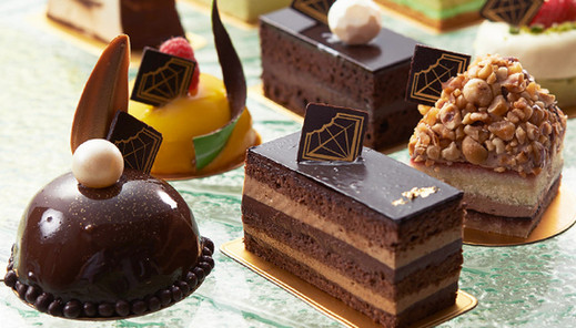 (前排左起) 松露朱古力蛋糕($40)、Opera Cake($40)、榛子朱古力饼 $28。