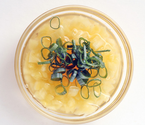 新鲜凤梨 30 公克、葱 1 根、水 3 大匙、米酒 1 大匙、盐少许