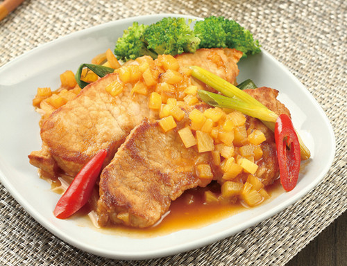 凤梨酵素是天然的肉质软化剂,不论猪肉、鸡肉、牛肉或海鲜,和凤梨都很搭,而且酸甜的风味还有开胃的效果。