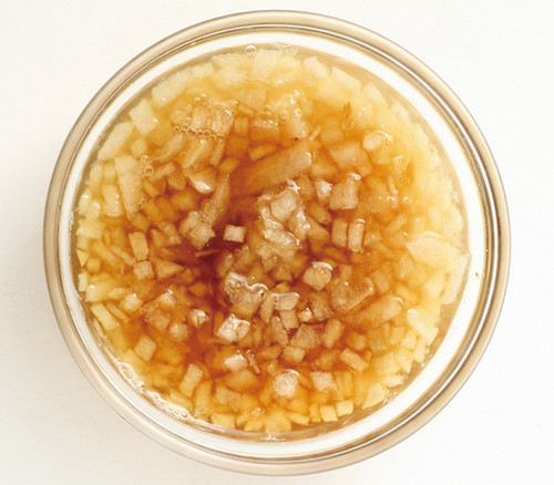 梨子 1/3 颗、米酒 1 大匙、酱油 1 小匙、香油 1 小匙、盐少许