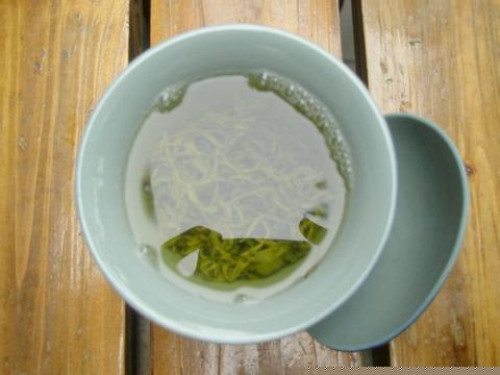 一开茶饮后,留汤三分之一时续加开水,为之二开。如是饮三开,茶味已淡,不再续饮。通过三开茶汤的鼻闻、口尝,综合领略茶味的适口度和香气的鲜灵度、浓度、纯度后,三香具备者为“全香”,茶形、滋味、香气三者全佳者为花茶高品、名品、珍品。泡饮一般中档花茶,不强调观赏茶胚形态,可用洁白瓷器盖杯,冲泡100℃沸水后盖上杯盖,5分钟后闻香气,品茶味。此类花茶香气芬芳,茶味醇正,三开有茶味,耐冲泡。
