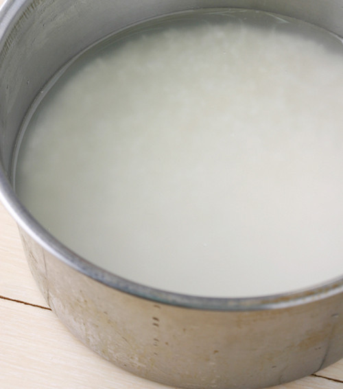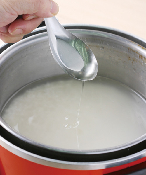 加水冲洗锅内的米粒,直到水不再浑浊后,再沥干其中的水分。