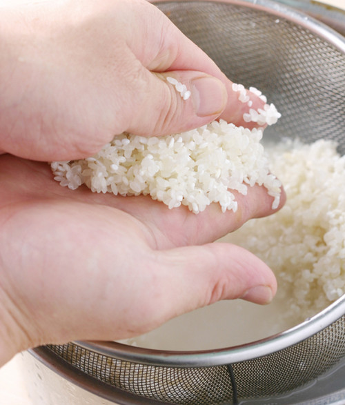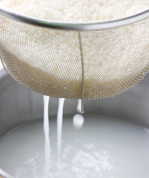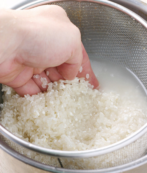 洗米时最好使用可沥干水份的筛锅装米,外面再加一个可盛水的外锅,将水加入筛锅内轻轻搅拌米粒。