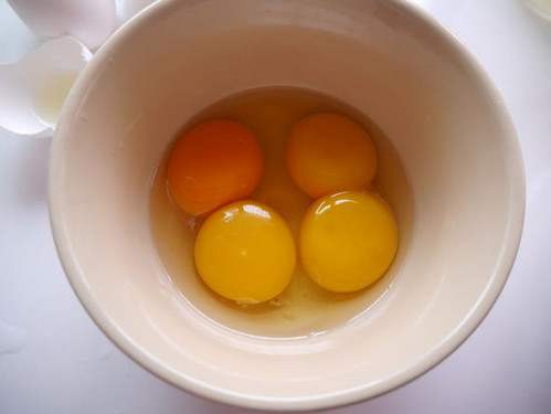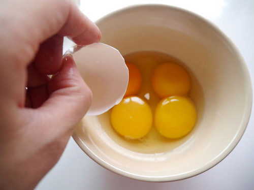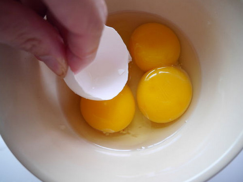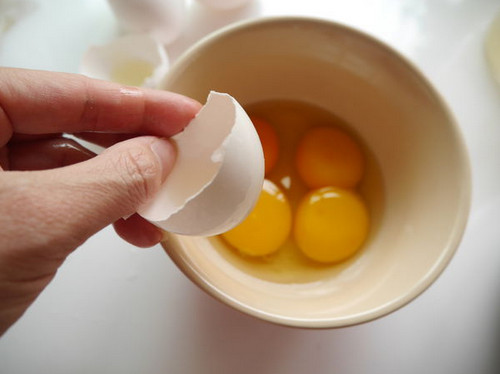 首先我们看下图,打好的蛋液中,有个碎蛋壳。