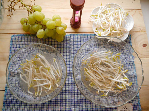 妈咪准备了豆芽菜,青江菜,葡萄三种蔬果来试试产品效果。