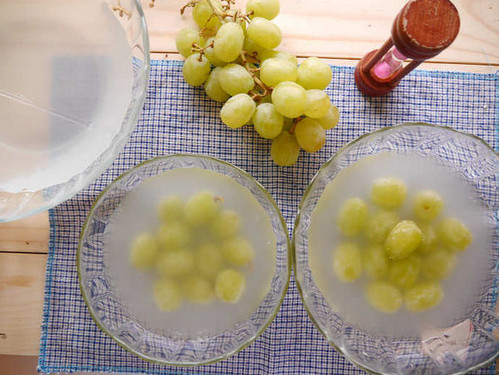 浸泡后,颜色变化较不明显,让我挺讶异长那么漂亮,还算干净的葡萄呢~