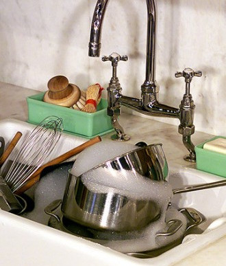 清洁剂需要使用大量的清水才能冲洗干净,因此最好用量不要太多,而使用海绵或菜瓜布来清除菜渣油污。