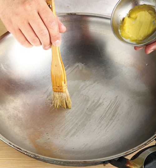 使用锅具制作烘焙时,锅面要用刷子涂上少许油,油不能太多,免得煎烤点心就变成油炸的感觉。除此之外,使用不沾锅也可以帮助不会黏锅。