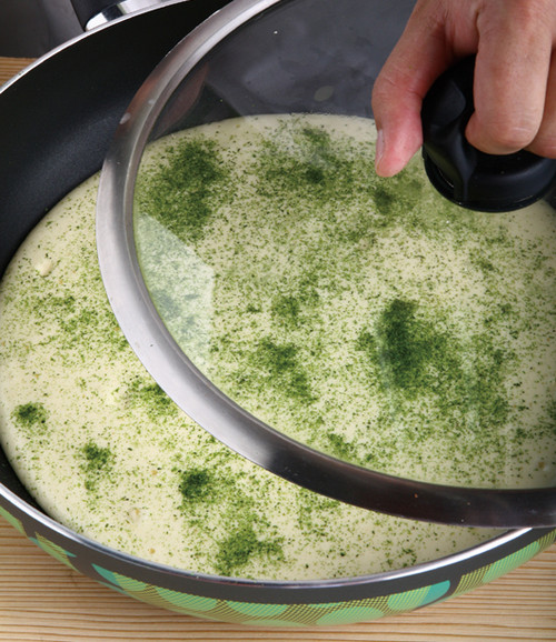 4.将作法3的平底锅放至炉上盖上锅盖,开微火。