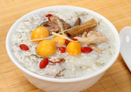 要注意加入材料的顺序,慢熟的先放。如米和药材要先放,蔬菜水果最后放。海鲜类一定要先氽汤,肉类则拌淀粉后再入粥煮,就可以让粥看起来清不混浊。