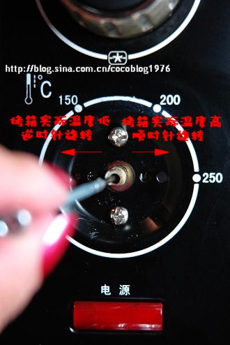 通过调节烤箱里温控器的弧度来变化烤箱的实际温度,我觉得烤箱又要拆又要装的,太繁琐,而且这个弧度也不好调节,所以还是选择了前者。